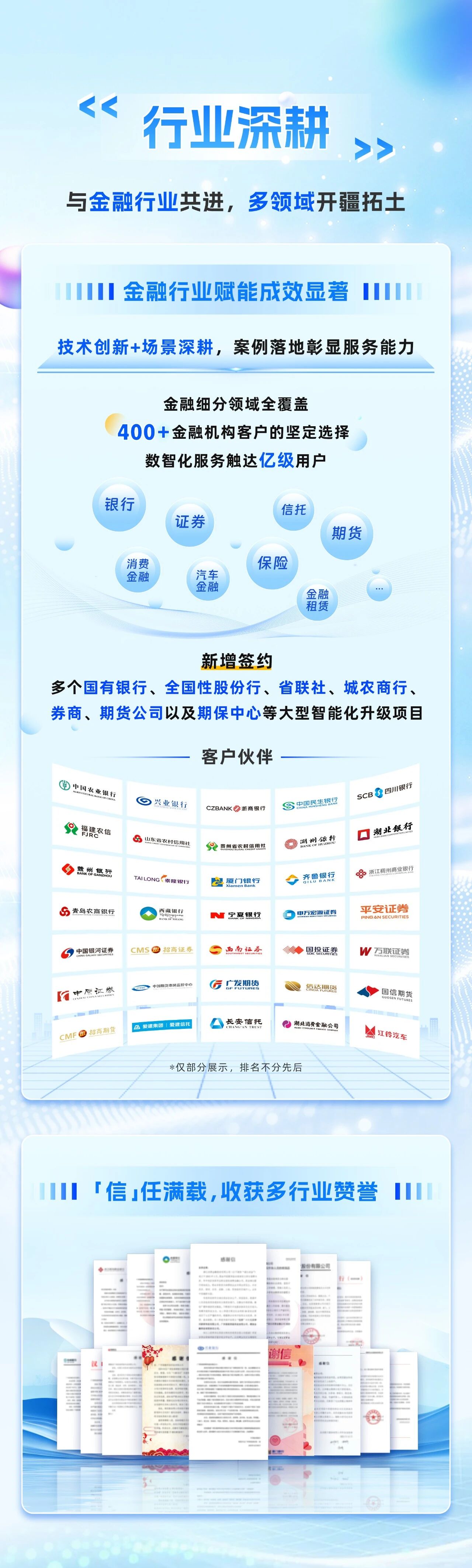 发展至今,佰锐科技已累计服务400+家金融机构,全面覆盖银行、证券、期货、保险、信托,以及金融租赁、汽车金融、消费金融等泛金融机构,通过稳定、安全、合规的技术、产品与解决方案,持续赋能金融机构在关键场景中实现效率突破与体验升级,真正成为金融客户长期信赖的数智化转型伙伴。