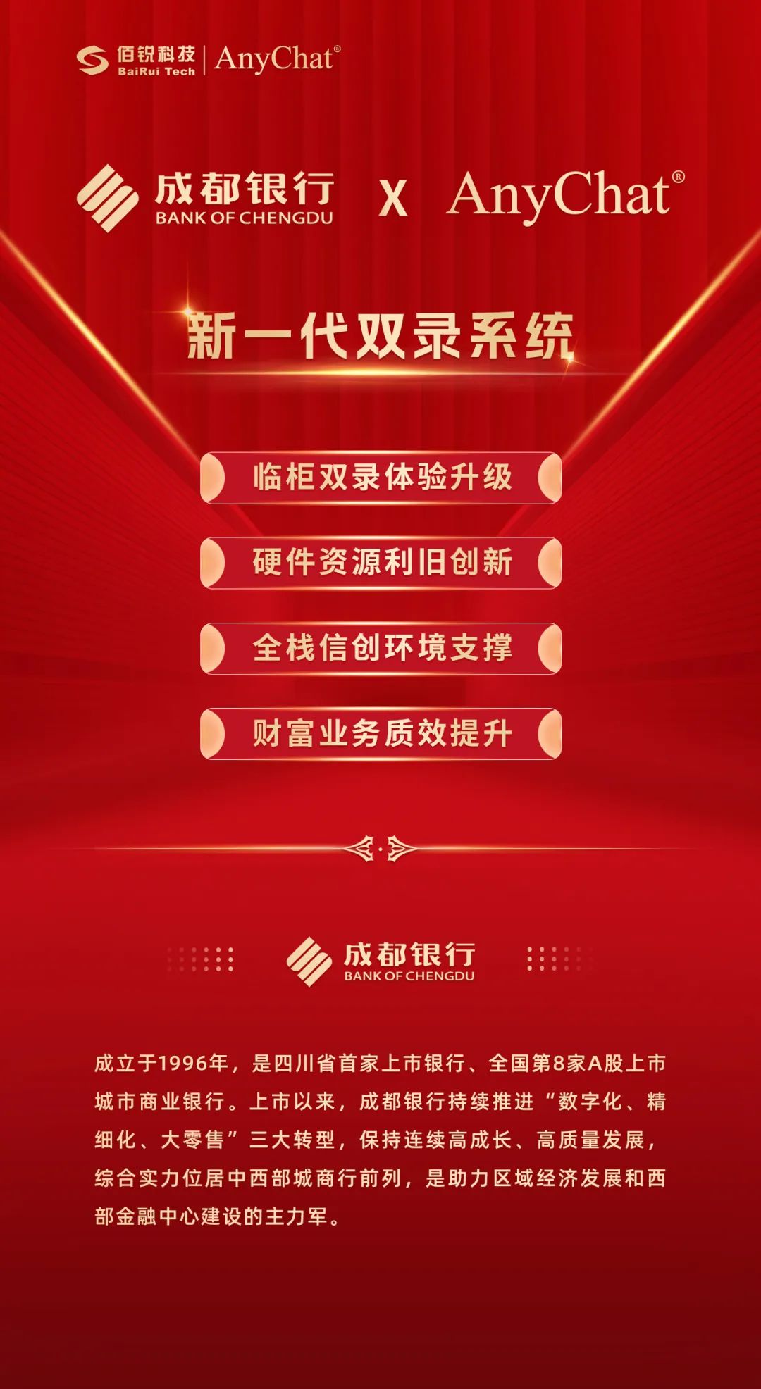 AnyChat中标成都银行新一代双录项目,助力财富双录全面创新升级!