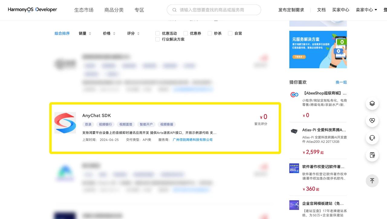 作为华为HarmonyOS生态及开发的优秀服务商,AnyChat在联合华为共建鸿蒙生态中不断发挥音视频技术引领作用,为各行业提供专业的鸿蒙原生应用开发与适配解决方案,其中已全面适配HarmonyOS NEXT最新版本的AnyChat鸿蒙SDK也已率先入驻「鸿蒙生态伙伴SDK市场」。