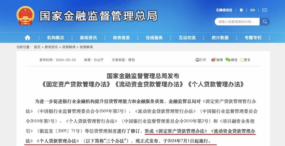 重磅!国家金融监督管理总局开年“三箭齐发”,发布《固定资产贷款管理办法》《流动资金贷款管理办法》《个人贷款管理办法》(统称“三个办法”),将于2024年7月1日起施行。这一系列新规,对商业银行信贷业务创新发展具有重要意义。