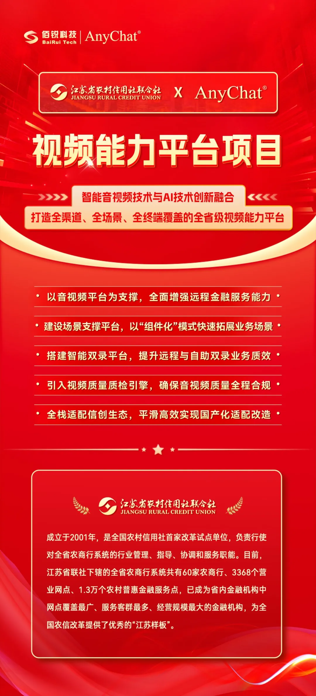 AnyChat中标江苏省联社视频能力平台项目,以金融科技创新全省智慧银行服务体系!