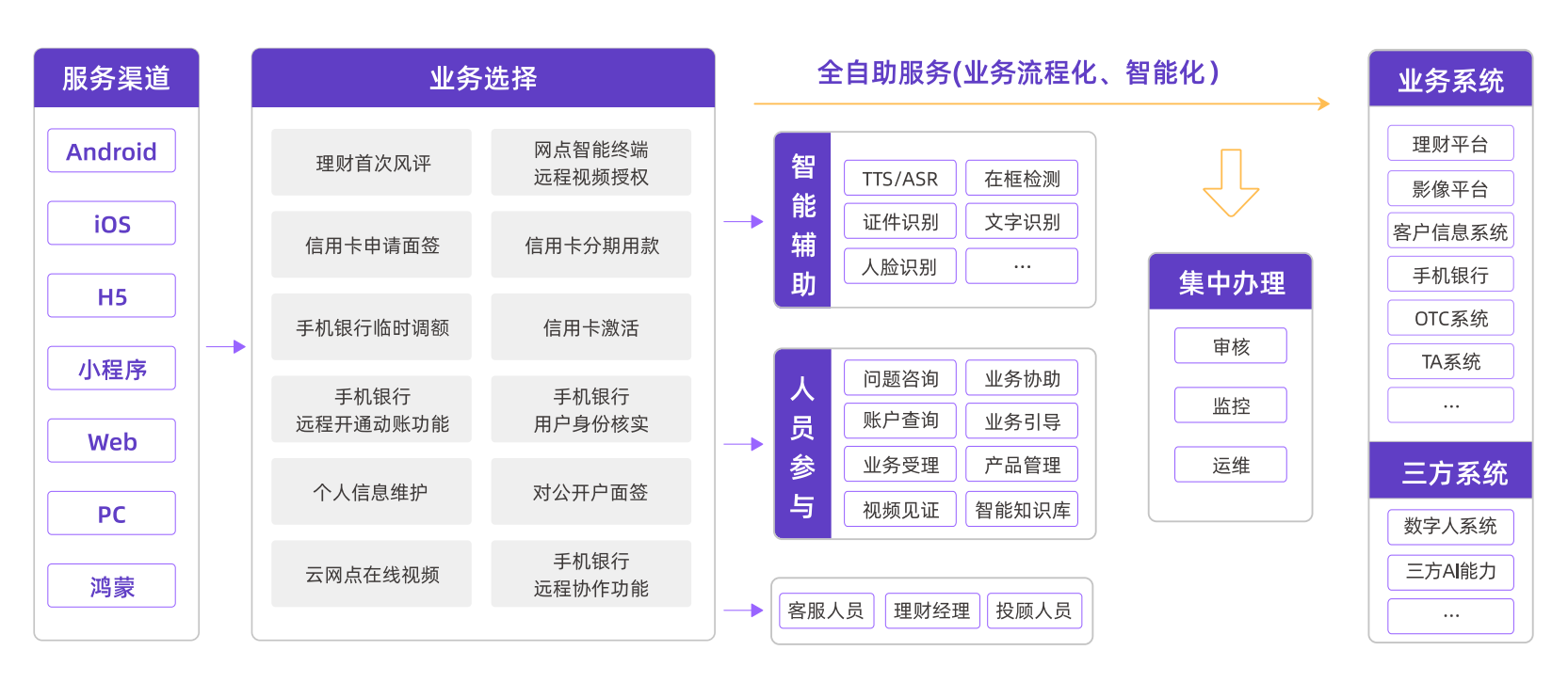 远程银行高度依赖音视频、生物识别等核心技术,其稳定性和体验至关重要。同时,系统必须与银行现有数十个后台业务系统深度打通,技术整合复杂度高。