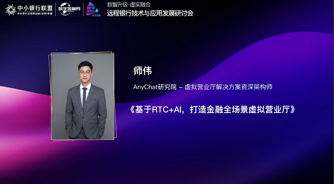 8月24日,由中小银行互联网金融(深圳)联盟、数字金融网主办的「远程银行技术与应用发展研讨会」在线上顺利举行。本次研讨会核心围绕“数智升级·虚实融合”,AnyChat作为行业领先的金融科技厂商代表受邀出席本次会议,并发表《基于RTC+AI,打造金融全场景虚拟营业厅》主题演讲。