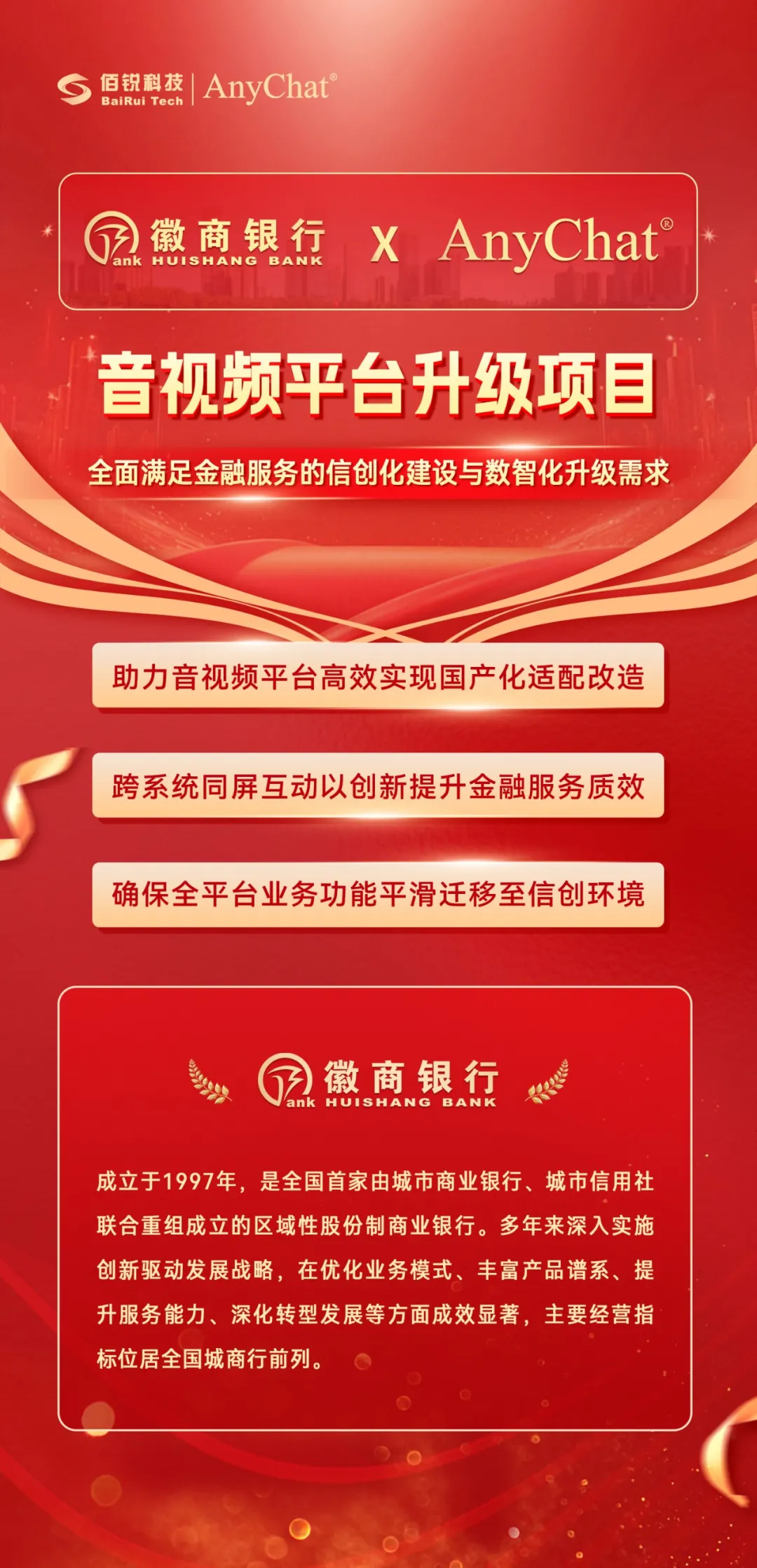 AnyChat中标徽商银行音视频平台升级项目,加速赋能信创化、数智化创新融合发展!