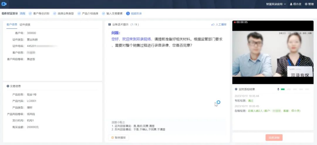 具体来看,受财富管理业务多样复杂的影响,在双录过程中若双录质检规则不完善、无法覆盖全量业务要素等问题会导致双录的合规性难以保障。