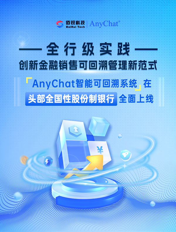 在本项目中,AnyChat凭借卓越的技术前瞻性、方案成熟度与大行服务能力,成功助力该行高效完成了财富管理业务全渠道可回溯数据的统一采集与存储,构建了贯穿销售全程的“电子证据链”,有效防范了操作风险与销售纠纷,为财富管理业务高效运营提供了坚实的合规科技支撑。